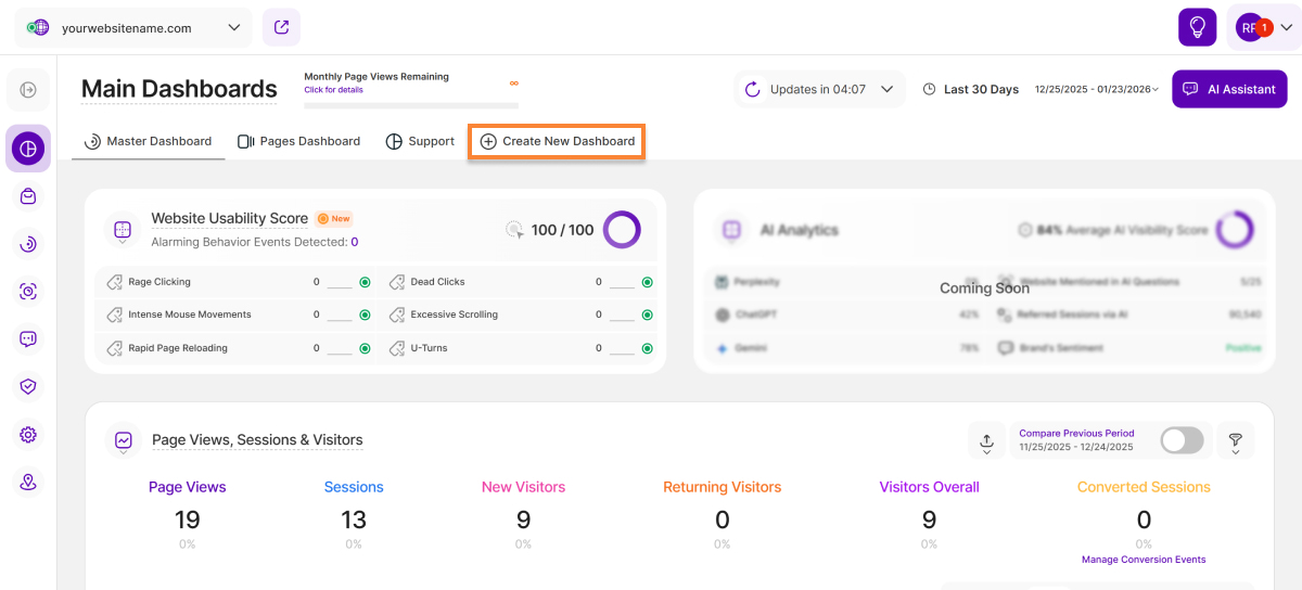 - Create New Dashboard: This provides you with the option to create custom dashboards to precisely match your preferences and needs.