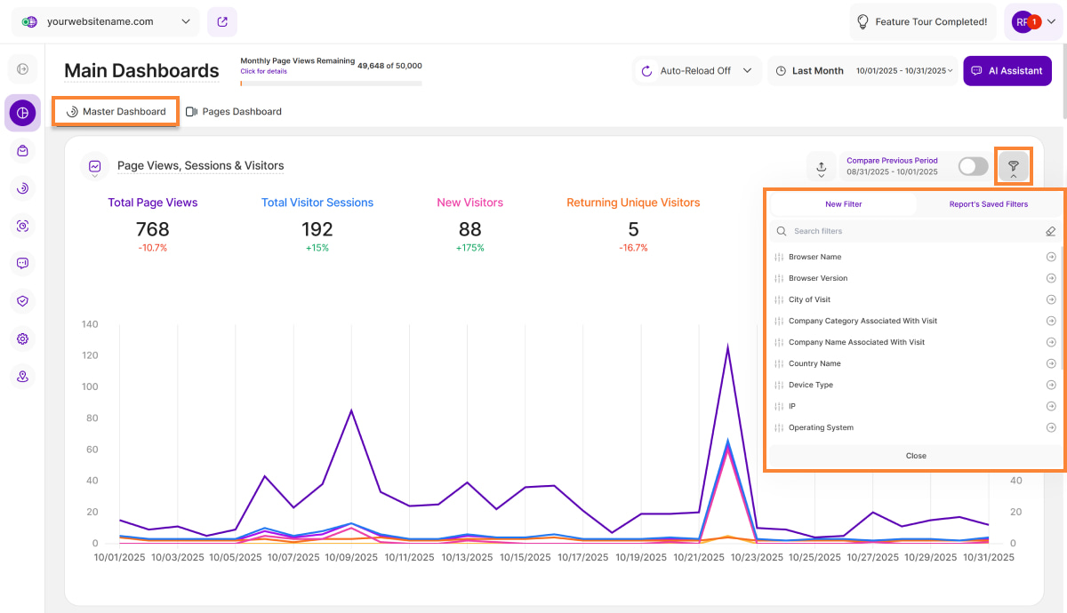 In the dynamic landscape of website analytics, having the ability to dissect and understand your data is paramount. To empower you with greater control and deeper insights, we're thrilled to announce the introduction of an array of new filters on our Main Dashboards report blocks. Let's dive into the exciting new features that will supercharge your analytics experience.
