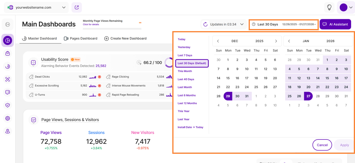 Important Note: The app now remembers previously set segments, filters, filter templates, and date intervals, even when you navigate away from the page, log out, or log back in. When your session expires or you close the tab, it automatically switches back to the default setting of "Last 30 Days."